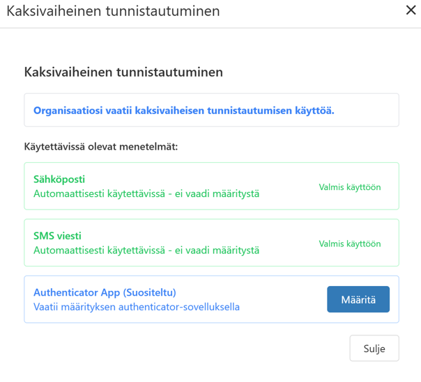 Klikkaa ”Määritä” kohdassa ”Authenticator App”.