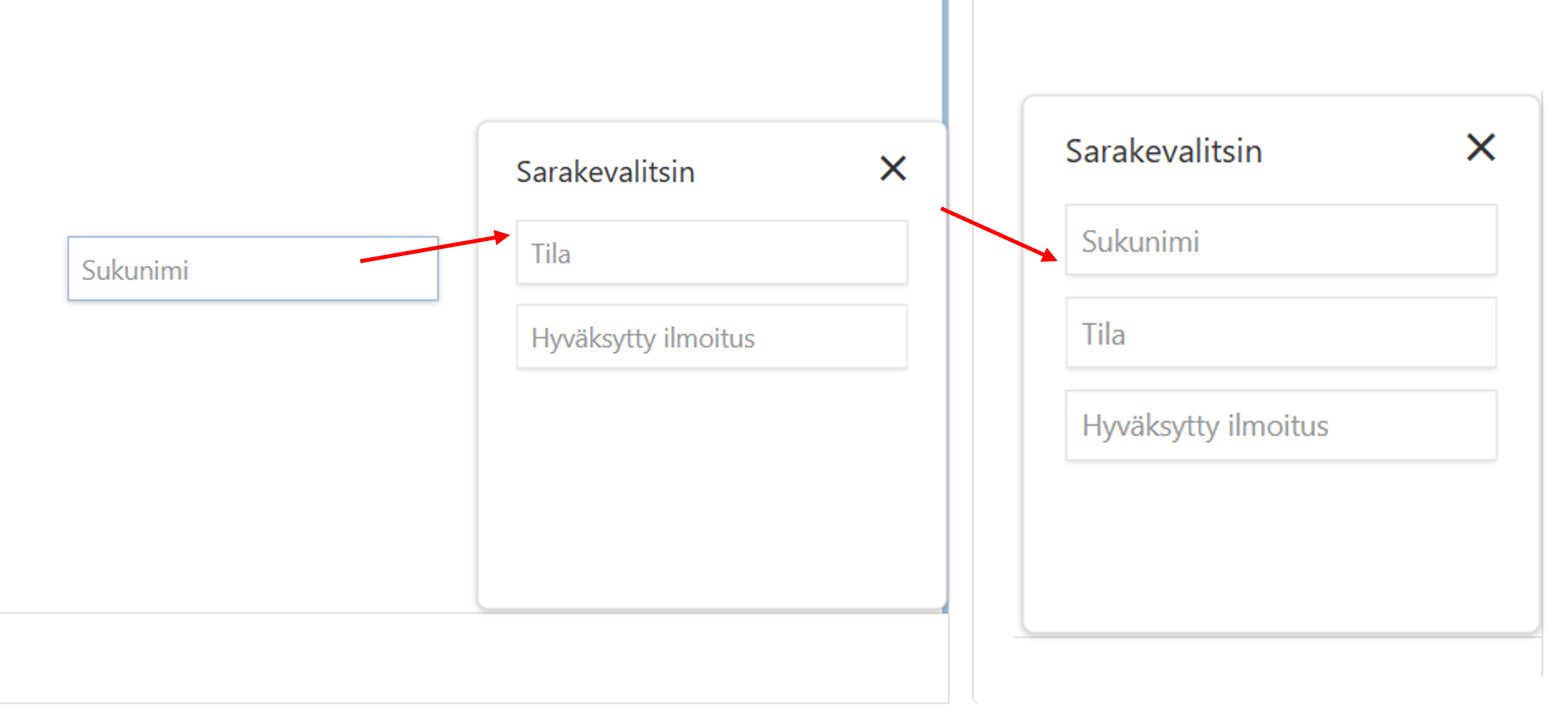 Voit halutessasi piilottaa sarakkeita näkymästä vetämällä ne taulukosta sarakevalitsimeen.